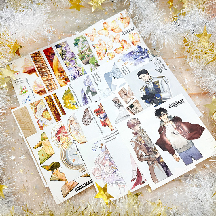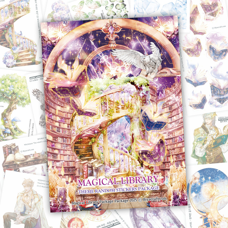 魔法図書館の雰囲気でコラージュを楽しむことができ、色柄はすべてランダムで多様に構成されています。